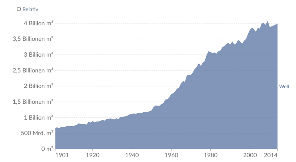 Der Wasserverbrauch pro Kopf hat sich im letzten Jahrhundert vervierfacht – eine Rate die sich noch beschleunigen wird, da sich die Wirtschaft verstärkt industrialisiert und sich die Weltbevölkerung weiter „verstädtert“.